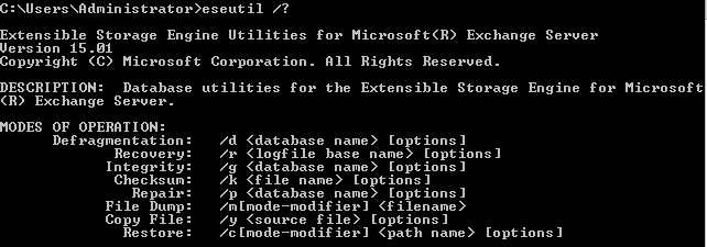 获取更多的信息EseUtil和它提供的所有参数,运行给定的命令:EseUtil /?