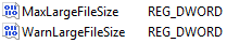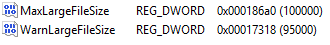 必须以十进制和MB为单位设置。因此,如果要设置100gb的限制,则必须输入100000。如果您想要一个95gb的警告,请输入95000(请参阅下面的条目)。如果dword不存在,则必须创建它们。