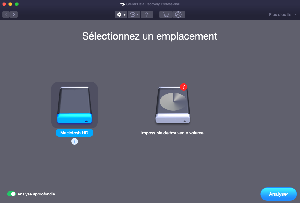 第四步。Pour one recherche rigoureuse de l'emplacement de storage, basculez / Analyse profondie / cliquez / sur analyzer
