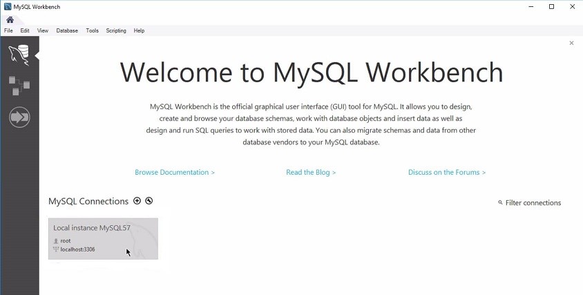 - 一旦安装了MySQL Workbench,并且在Workbench和目标MySQL服务器之间建立了连接,单击本地实例MySQL57(如下图截图):
