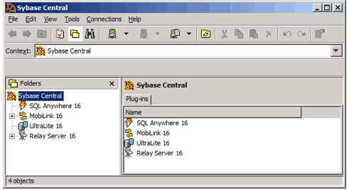 步骤1:发射Sybase中央(开始>程序> SQL Anywhere 16 >管理工具> Sybase Central)。如果提示对话框和/或欢迎对话框出现,关闭它们。