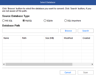 步骤3:要选择要转换的数据库文件,请单击“数据库路径”下的“浏览”,然后单击“扫描”。