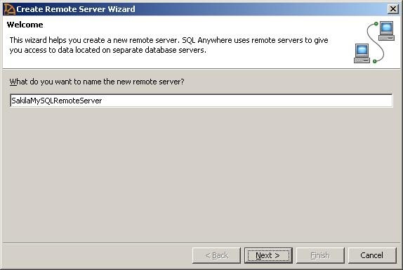 步骤4:出现提示时,输入'SakilaMySQLRemoteServer’作为远程服务器名称,单击下一个.