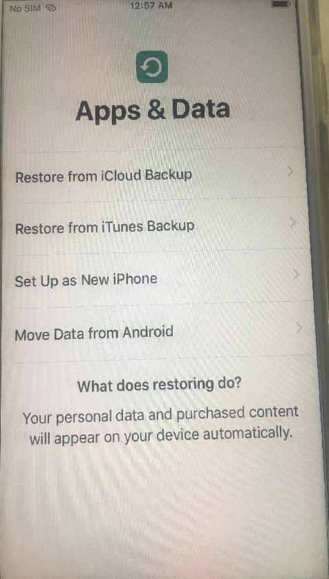 - 按照说明操作,直到进入“应用程序和数据”屏幕