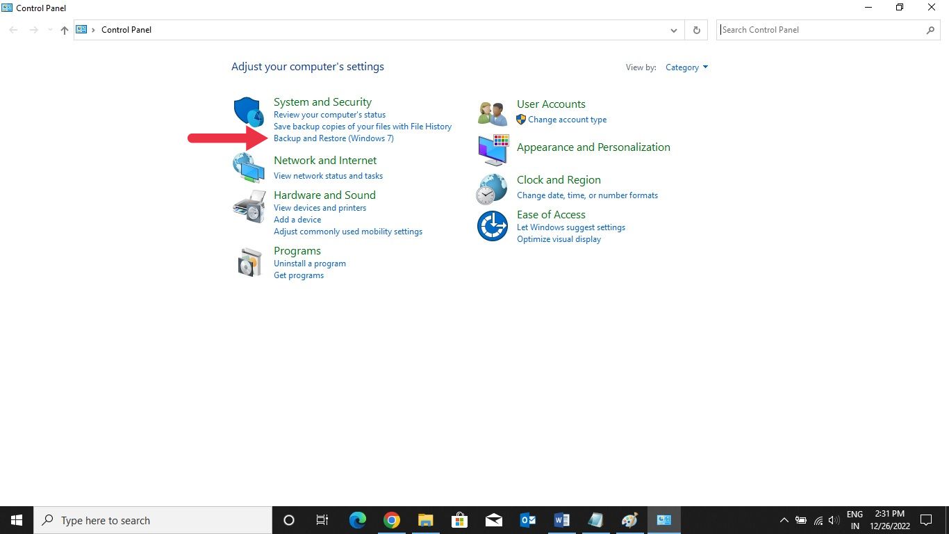 - 点击系统及安全然后备份和恢复(Windows 7)。