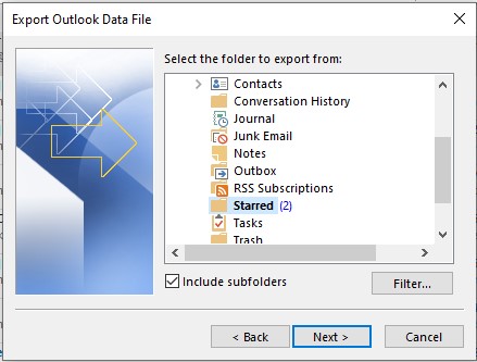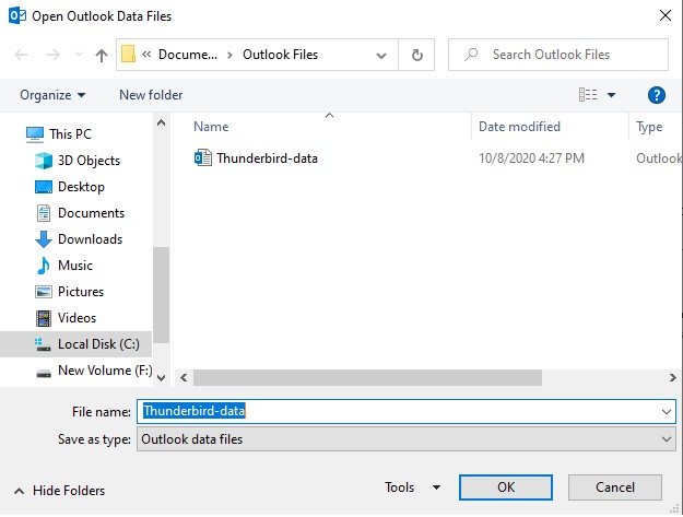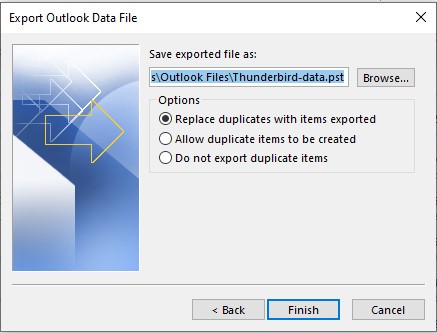 现在,您需要将Outlook中添加的(Thunderbird)邮箱文件夹中的数据导出到PST文件。为此,执行以下步骤: