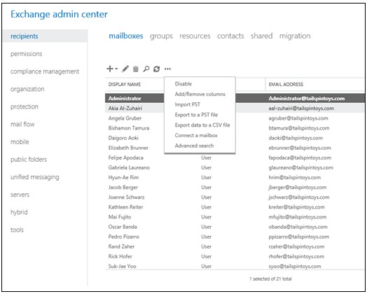 最后,您需要通过使用将PST文件数据导入Exchange Server中的邮箱交易所管理中心(EAC).步骤如下: