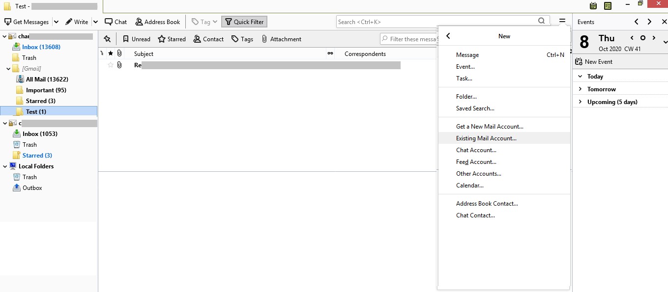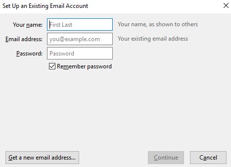 在第一步中,您需要在雷鸟中配置现有的Outlook帐户。为此,请执行以下操作: