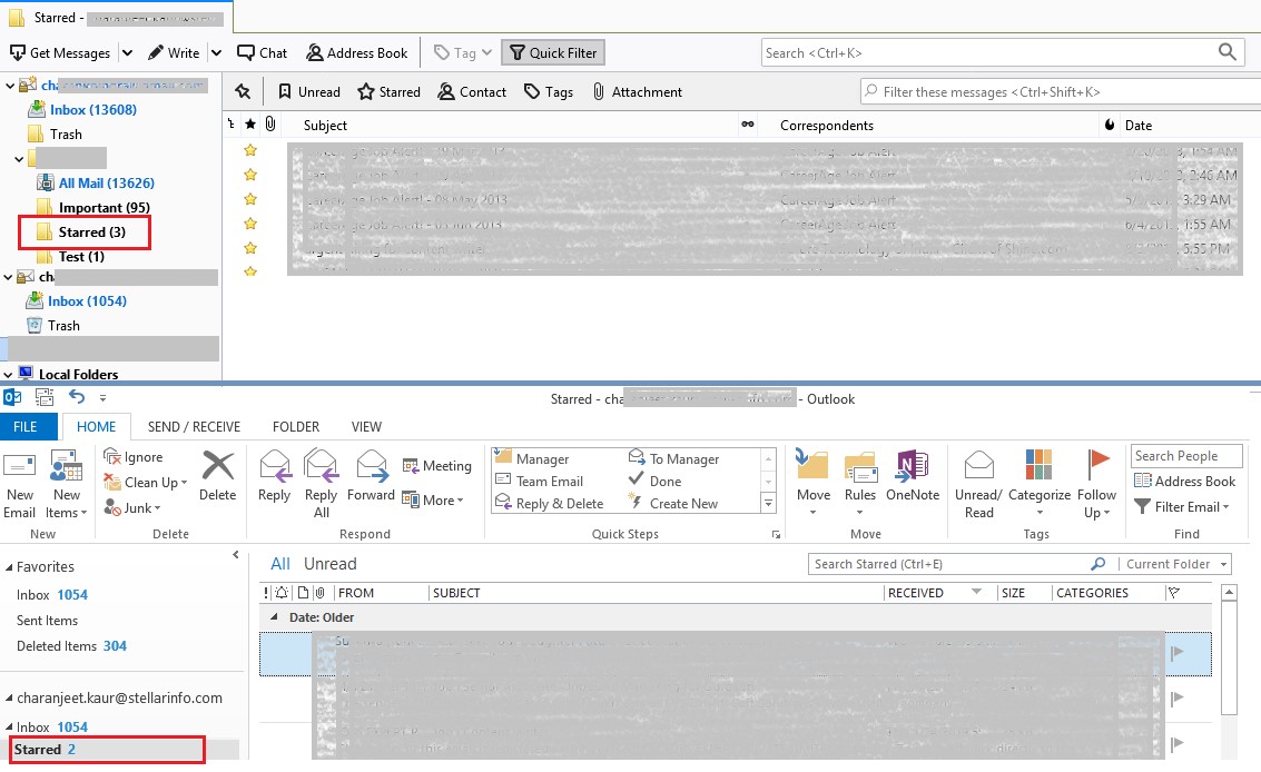 例如:在下图中,名为“星星”的文件夹在雷鸟和Outlook电子邮件帐户中都可见。