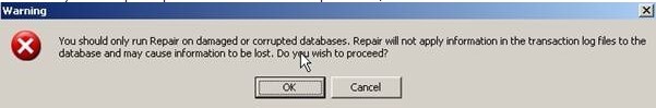如果仍然出现错误,并且数据库仍然处于肮脏的关闭状态,然后尝试通过硬恢复修复数据库。但在此之前,您必须知道此修复过程将清除EseUtil发现的任何损坏的数据。您需要考虑并接受硬恢复将导致的数据丢失,而不考虑损坏。