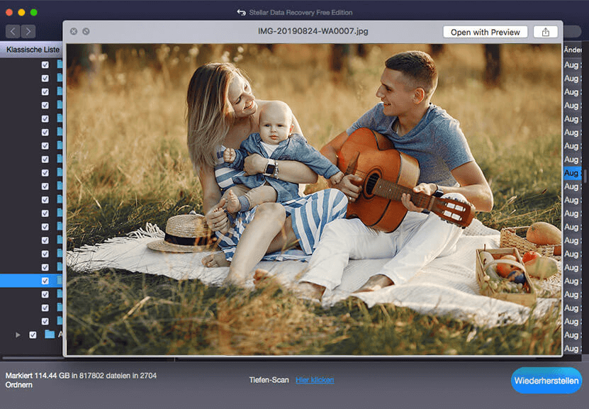 Die Software zeigt nach dem扫描der Speichermedien eine detaillierte Vorschau aller anderen wiederherstellbaren Daten an。你ermöglicht es Ihnen, allle Daten, die vom Mac-Gerät oder angeschlossenen speichermeen wiederhergestellt werden können, klar zu sehen, bevor Sie sich entscheen, die Dateien auszuwählen und zu speichen。