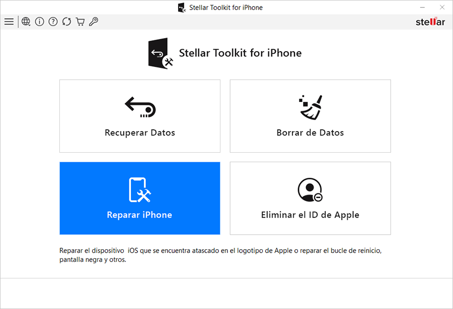 Stellar Toolkit for iPhone puede修复los问题de iOS en su dispositivo, como el iPhone atascado el logotio de Apple o el bucle de reinicio, la pantalla negra, el modo de recuperación, el bloqueo de iOS, la pantalla blanca la muerte u otros。El software avanzado de reparación de iOS puede repair El iPhone o El iPad sin eliminar los datos del dispositivo。