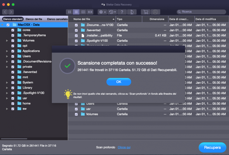 8.Dopo che il processso di scansione è statto complete, i dettagli dei file e delle cartellle individui vengono visualizati in una finestra di dialog, come most strato di seguito。