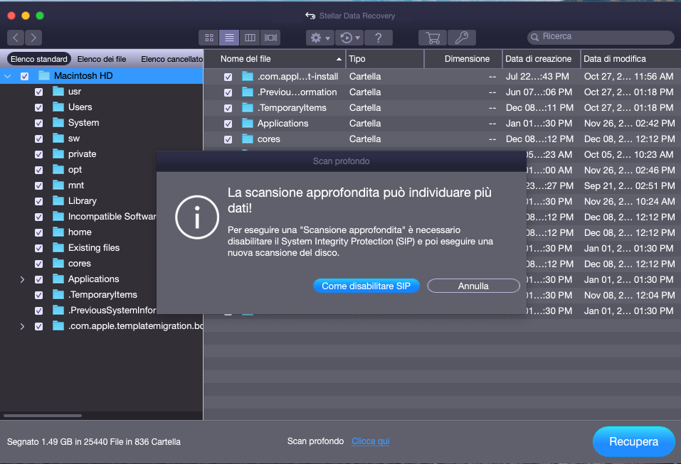 欧宝娱乐app下载地址恒星数据恢复欧宝app官网登录/4.Lavorare控制软件/4.9.Esecuzione di una scansione approfondita/4.9.2.系统完整性保护(SIP)的残障?