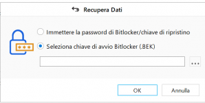 在另一种情况下,选择是单选按钮Seleziona chiavio Bitlocker (.BEK)。点击每一个分数,选择一个文件,点击好吧。