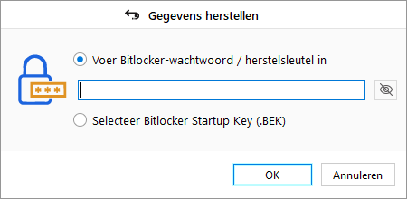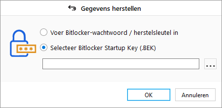 Opmerking在BitLocker -opstartsleutel (. bek -bestand)的选择中,使用BitLocker - wachwood / herstsleutel (. bek -bestand)。Gebruik een van de volgende stappen从扫描过程开始: