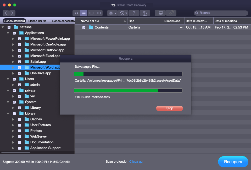 I file selezionati saranno recuperati e salvati nella una posizione specificata. Navigare fino alla destinazione per visualizzare i file.