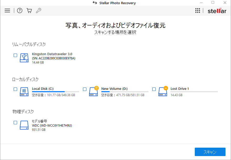 7.データの復元を開始するためにスキャンをクリックしてください。