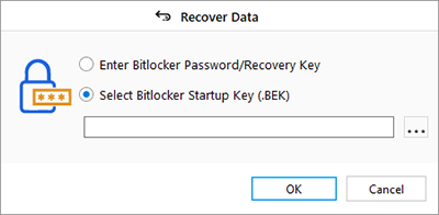 Note:If you are scanning a drive thatis encryptedusingBitLocker, you will be prompted to either enter the Bitlocker password/Recovery Key or Select a Bitlocker Startup Key (.BEK file). Use any one of the following steps, to initiate the scan process: