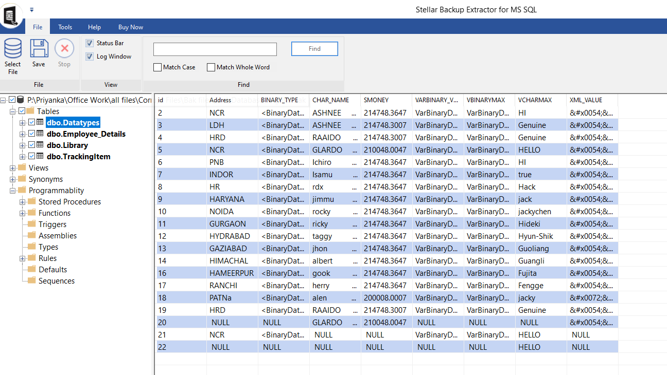 按照上面的步骤,你可以很容易地检查SQL备份文件(BAK)的预览使用SQL备份恢复的恒星Toolkit for MS SQL。