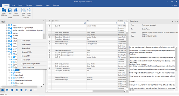 恒星维修交换Stellar Repair for Exchange是MVP最推荐的软件。它修复损坏的交换数据库(EDB)文件和恢复邮箱内容,如电子邮件,附件,联系人,Outlook PST文件日历。