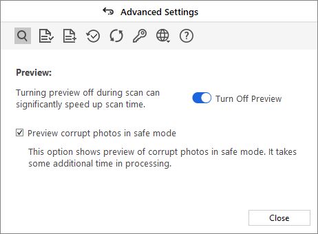 您可以在扫描期间关闭文件的预览。这有助于显著加快扫描时间,从而加快恢复过程。