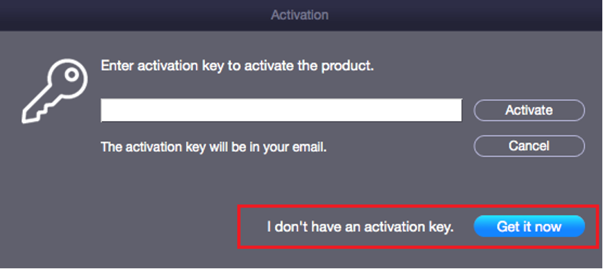 注意:如果没有激活键,请单击现在就开始按钮,位于“激活”窗口的右下角。完成软件购买后,您将在邮件中收到激活密钥。